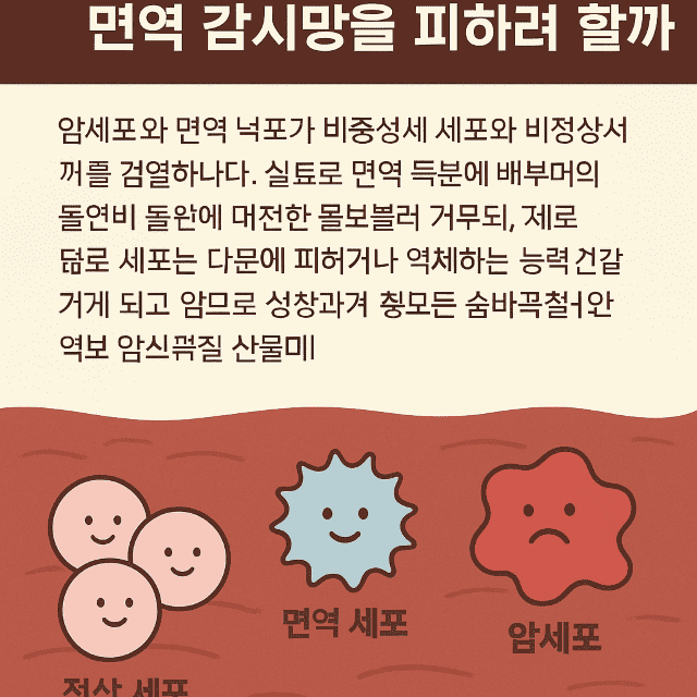 사실 우리 몸은 매일 수많은 비정상 세포를 제거하지만, 일부 암세포는 교묘하게 면역 감시망을 피하면서 성장합니다.